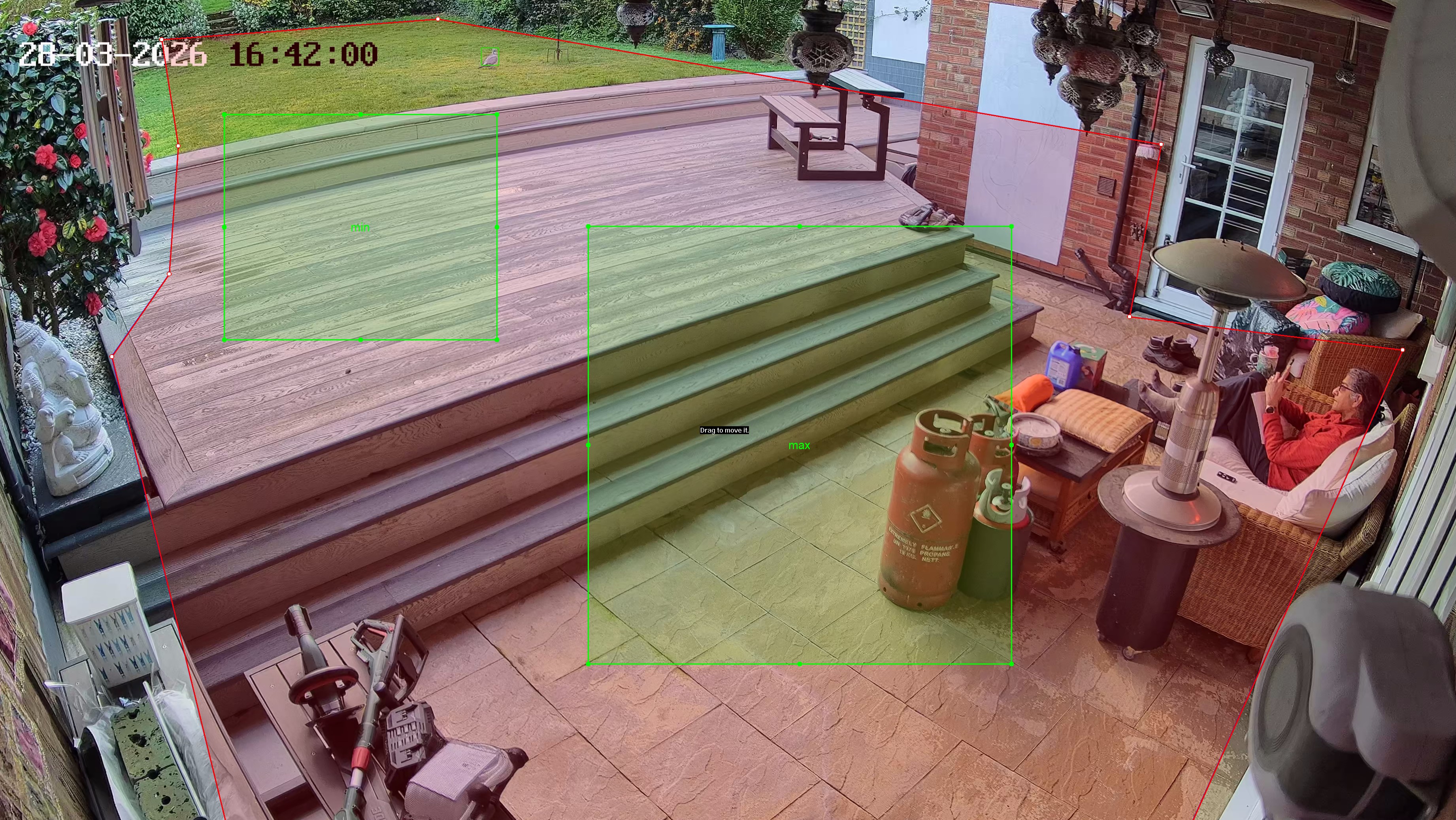 It's basically recording all day. Is something wrong or am I misconfiguring it. I might split the detection zone into two and draw smaller boxes in the lawn area, but for now surely it should be recording things smaller than my min?