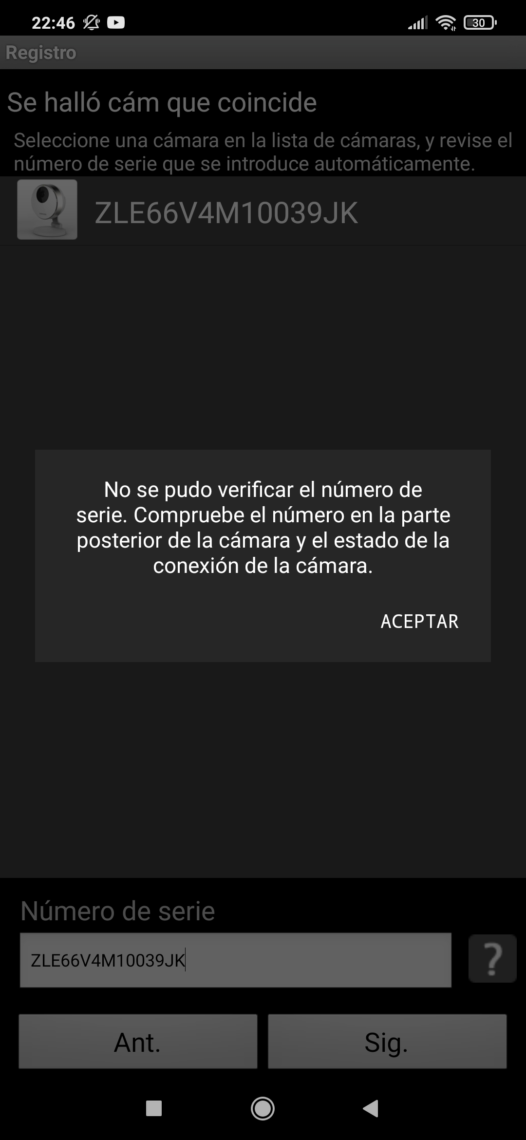 Hi! It says that the serial number can't be verified and I typed the serial number that's in the back of my verisure camera. It seems it's locked and I can't acces, any solution? Thanks a lot!